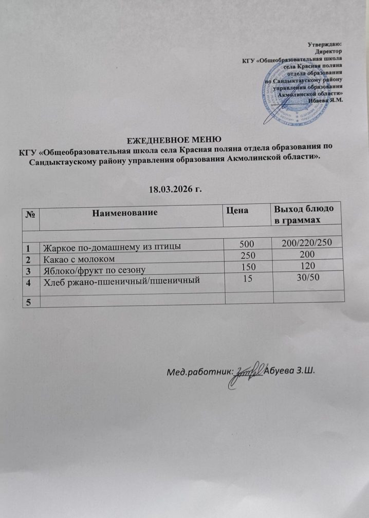 КГУ"Общеобразовательная школа села Красная поляна отдела образования по Сандыктаускому району управления образования Акмолинской области"