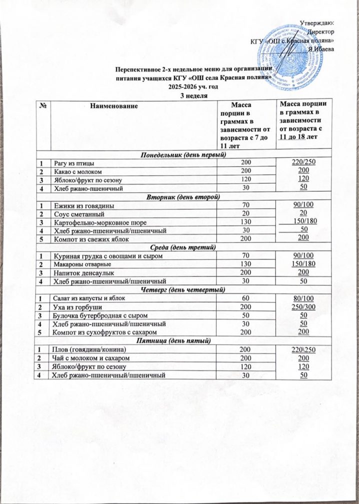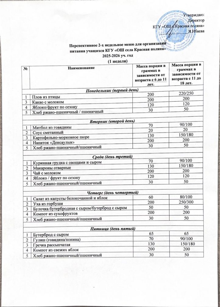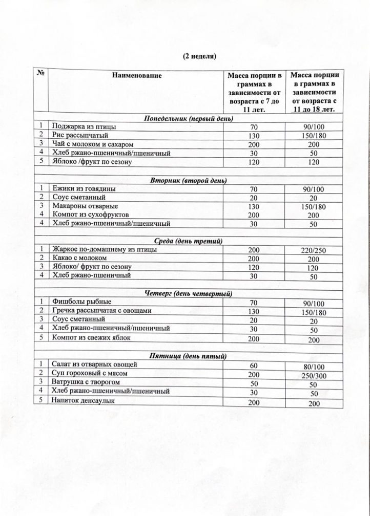 Перспективалы 2 апталық мәзір 2025-2026 оқу жылы